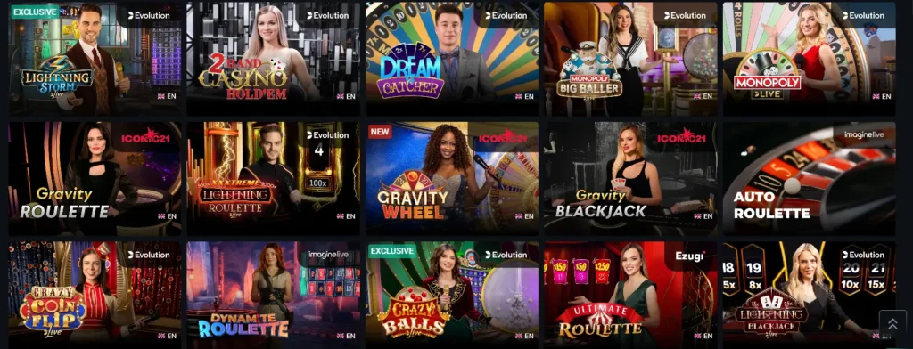 - Diverse Game Library: Beyond standard tables, you can enjoy innovative game shows like Crazy Time or Mega Ball.