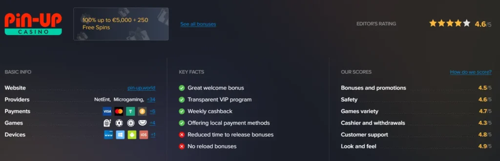 Based on leading review aggregators like AskGamblers, Casino.guru, and Casino.org, Pin-Up maintains a strong reputation.