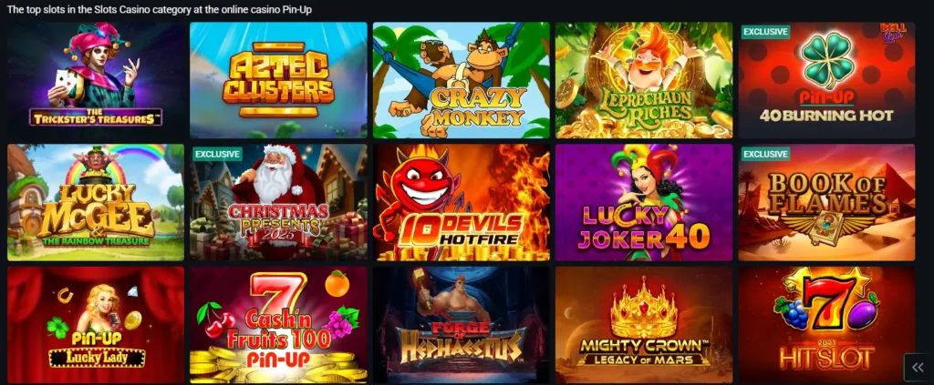 | Game Type | Popular Titles at Pin-Up | Key Feature |